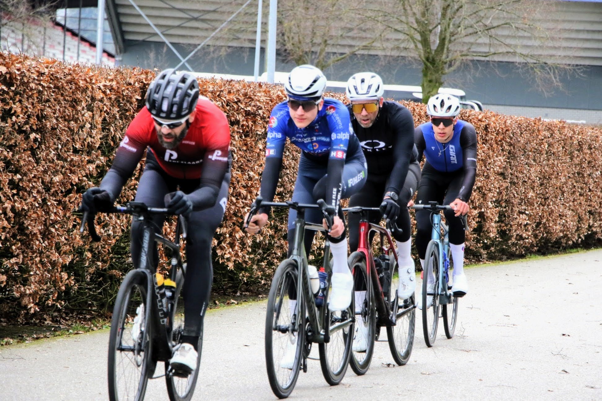 Er wachtte hem een lichte teleurstelling, toen hij het aantal deelnemende WSV’ers begon te tellen. Het waren er slechts drie, namelijk Elmar Bischop, Daniël Hessels en Ivar Hengeveld. Gelukkig hadden beide laatstgenoemden op het laatste nippertje nog ingeschreven, anders was de “oogst” nog kleiner geweest. Waar de anderen waren ? Van Quinten Vos weten we, dat hij belangrijkere dingen aan zijn hoofd had. Hij was de gelukkige vader geworden van een dochter (van harte gefeliciteerd !). Sommige anderen, zoals Niels Veldman, waren zich aan het voorbereiden op de Kasseienomloop, maar waar waren Goos Beukema en Jan Vos ? Volgens insiders zijn die twee wel weer “opgestart” voor een nieuw seizoen, maar op de trainingsritten hebben ze zich tot dusver nog niet laten zien. Volgende week misschien ?
